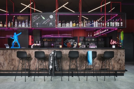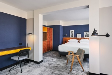 Jeden z największych hoteli tej marki w Europie. Ponieważ zlokalizowany jest na Woli, która przez dziesiątki lat była miejscem z dominującym przemysłem, dlatego bryła hotelu, elewacja budynku, podziały okien i kolorystyka nawiązują do skojarzeń z architekturą przemysłową z przełomu wieków. Również wnętrza inspirowane są przemysłowym dziedzictwem dzielnicy, a beton, stal i drewno w czystej formie nadają przestrzeni surowy, ale przytulny charakter. Warszawski, indywidualny charakter wnętrzom w częściach wspólnych nadaje też motyw przewodni nawiązujący do fabryki FSO i pierwszego produkowanego w nim seryjnie samochodu w powojennej Polsce – Warszawy M20. Zabytkowy model wyeksponowany w lobby reprezentować ma ducha stolicy, wzmocnionego neonem Syrenki, a całość wnętrz łączyć energię wielkomiejskiego życia z funkcjonalnością, przyciągając nowoczesnym designem, inspirującą przestrzenią wspólną i innowacyjnymi rozwiązaniami technologicznymi.